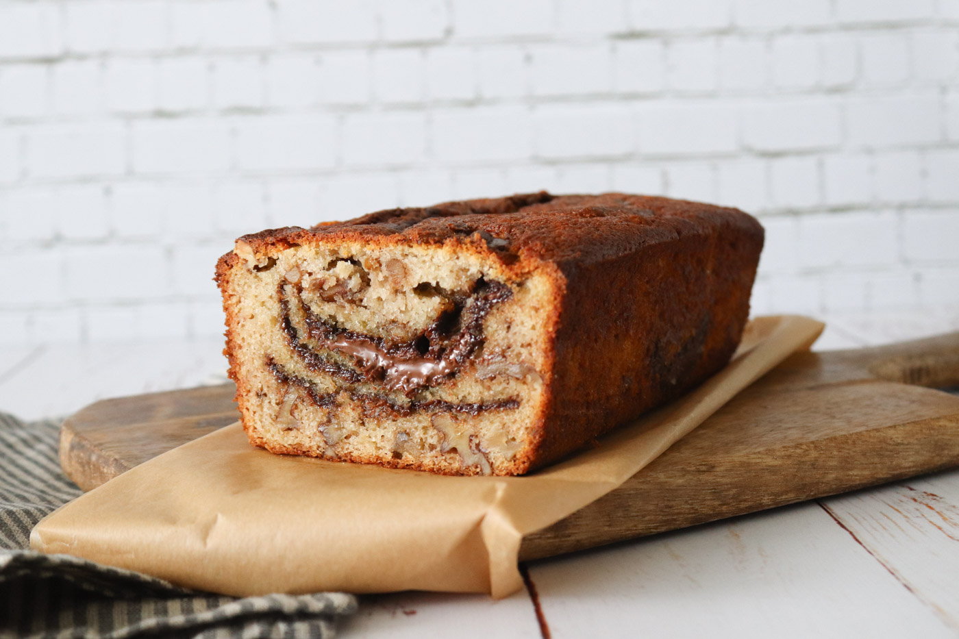 Svampet og lækker banankage med nutella og valnødder. En kage der ikke tager lang tid at lave og smager fantastisk. Den perfekte måde at bruge overmodne bananer på og en super kage til gæsterne.