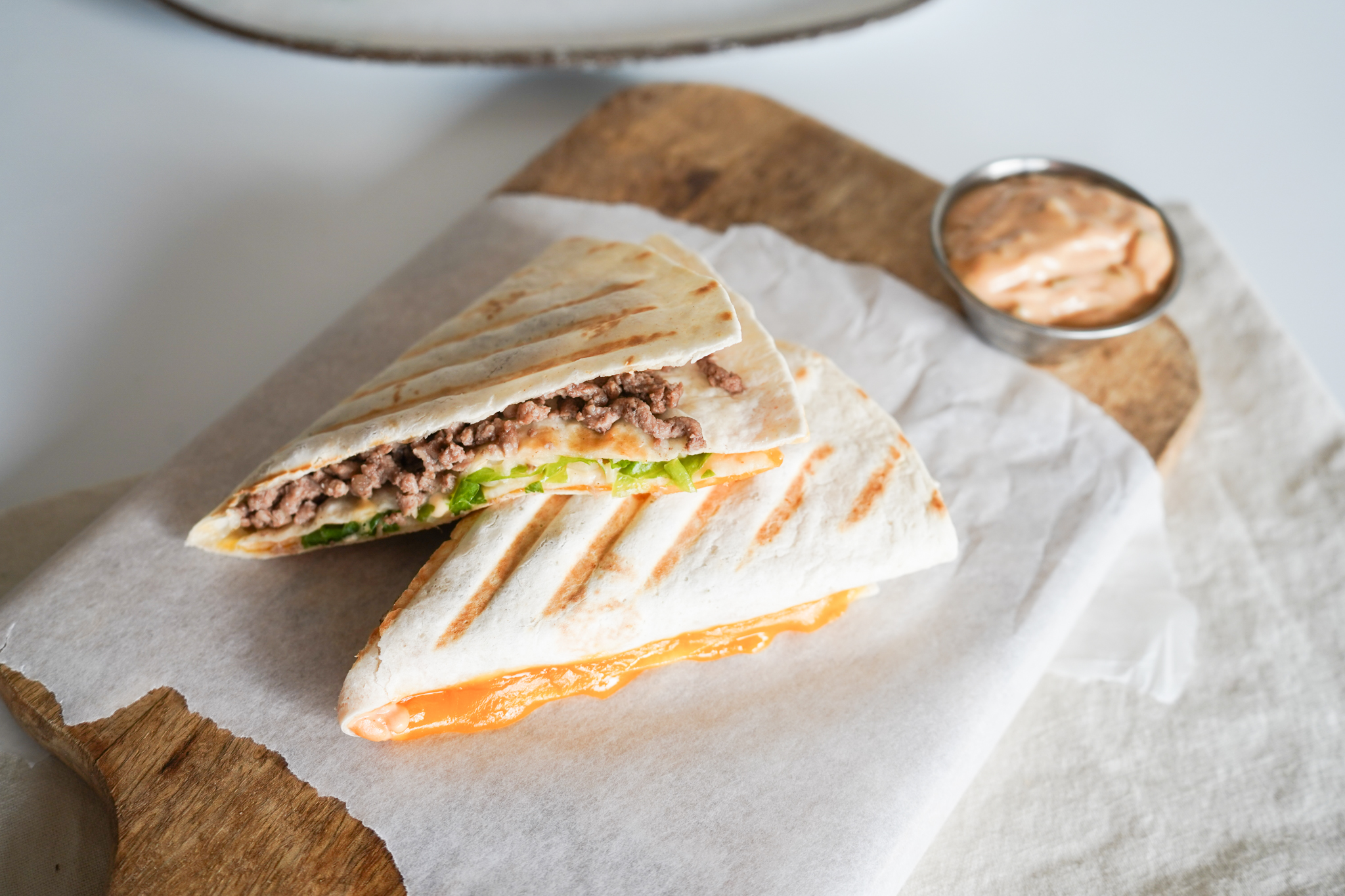 Big Mac quesadillas er en form for toast med tortillas og lækkert fyld. Her er det lavet med Big Mac fyld, heriblandt en hjemmelavet Big Mac sauce.