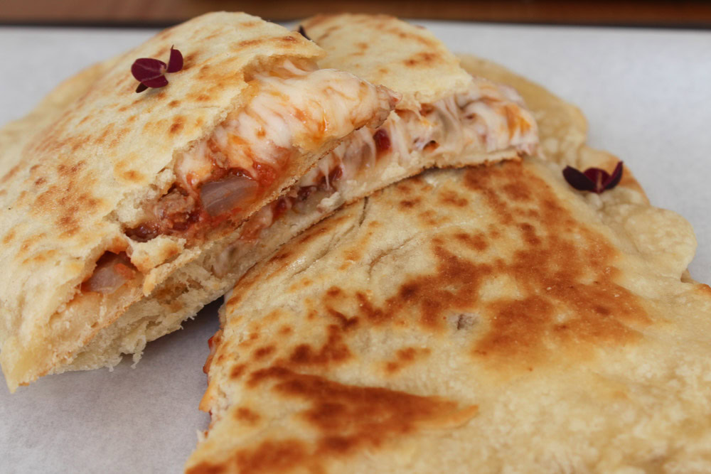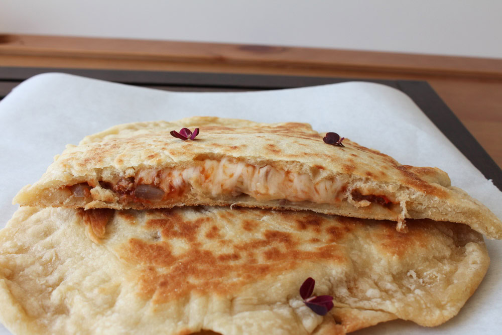 2 store fyldte flad brød (nok til 3-4 personer)