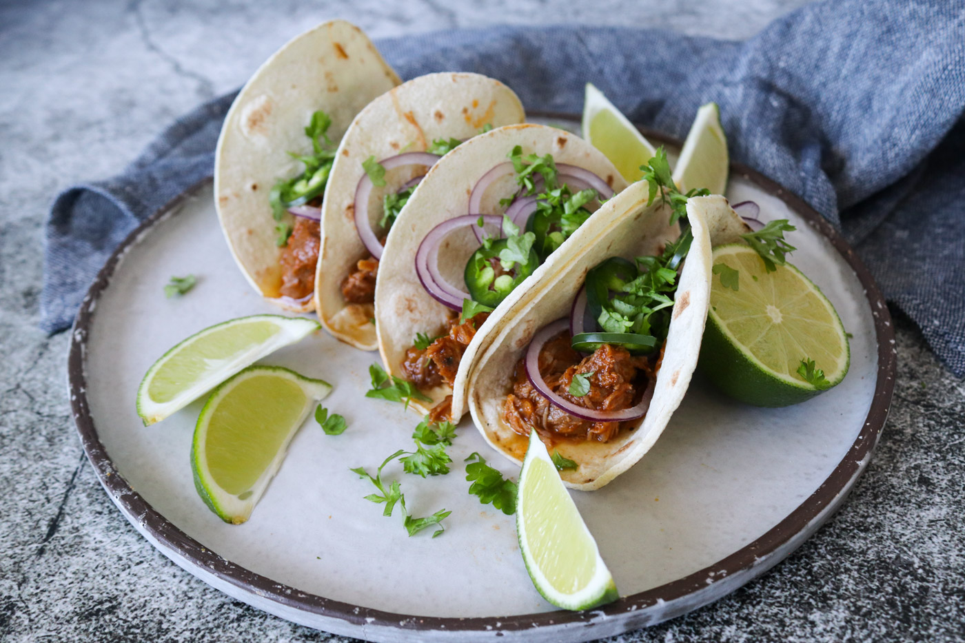 Jeg får ikke svinekæber tit – faktisk meget sjældent. Men disse var på bud og jeg smed dem fryseren, indtil jeg fandt den bedste både at lave og servere dem på. Det blev til disse virkelig lækre tacos, som min kæreste også var helt vild med. De skal simre i 3 timer, men det er også det hele værd!