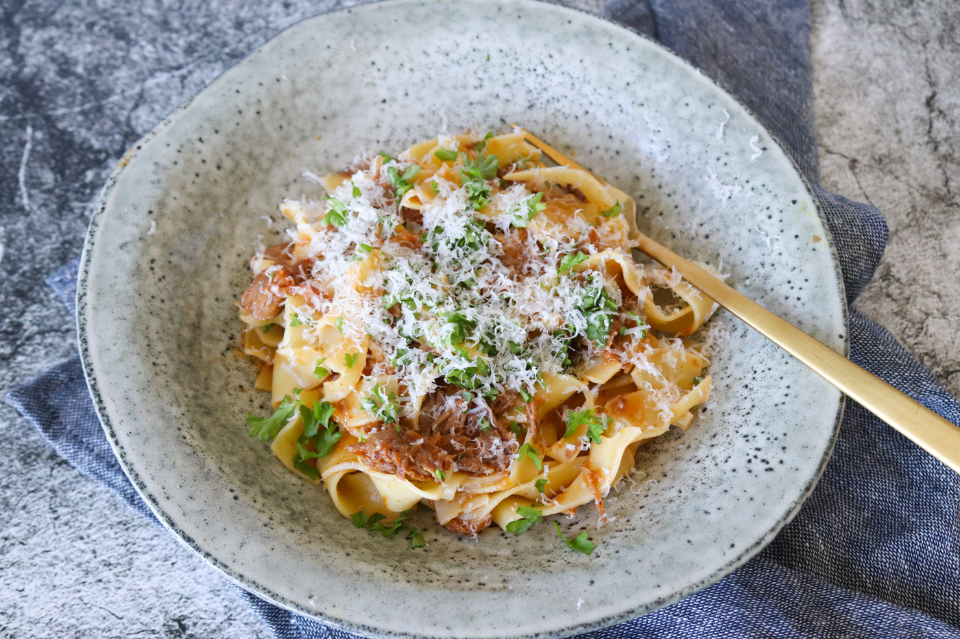 Jeg elsker braiserede svinekæber og de smager fantastisk vendt i pasta med noget parmesanost og persille. Svinekæber tager 3 timer at tilberede, men det er det hele værd. Det er den perfekte ret til weekendens hygge.