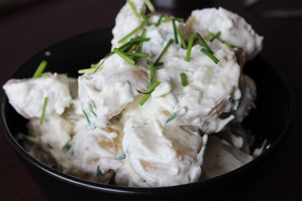 Prøv f.eks. squashsalat med fetacreme, tomatsalat, kartofler med pebefrugtcreme, stegt romaniesalat med parmesansauce og mange flere.