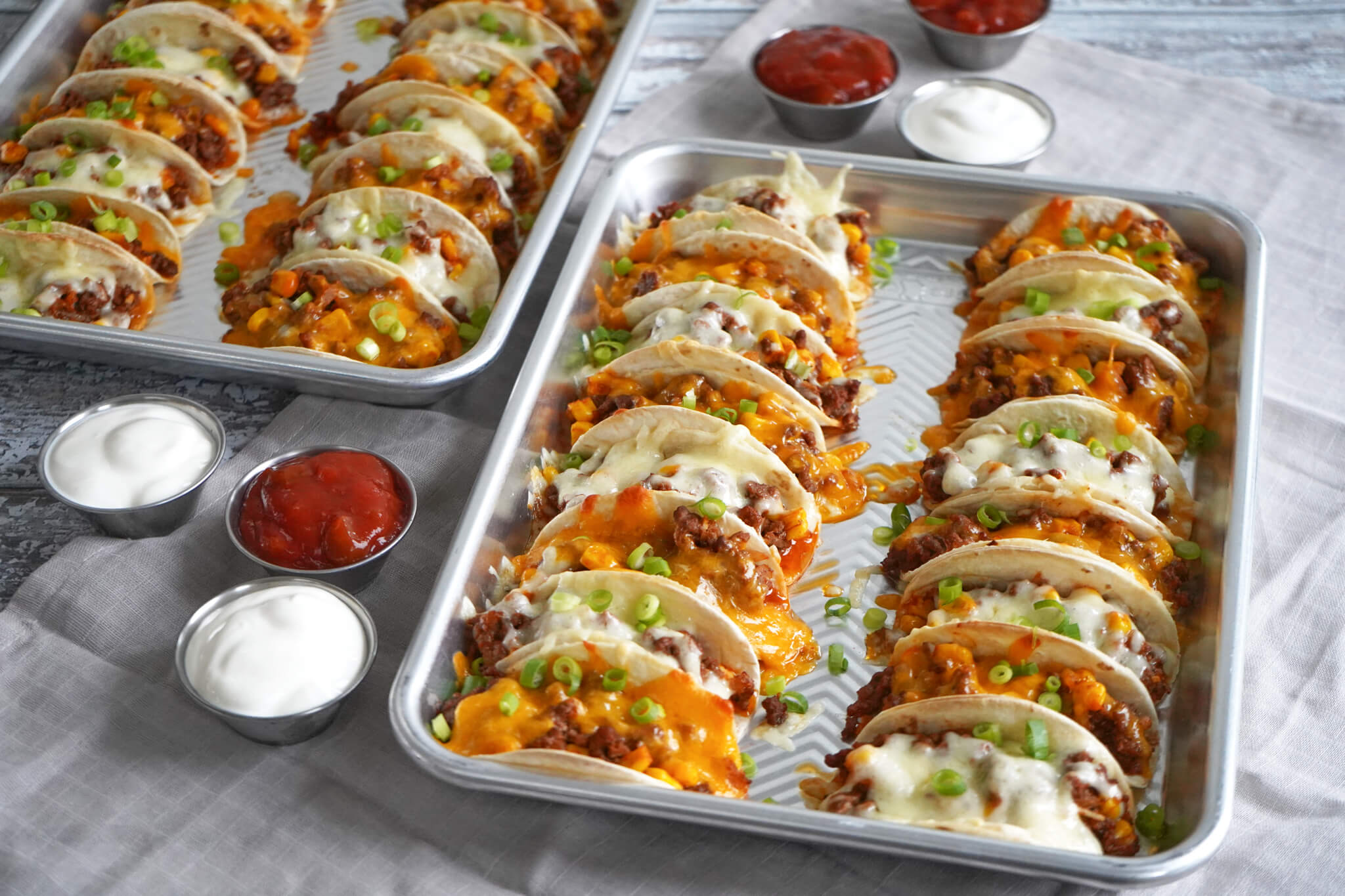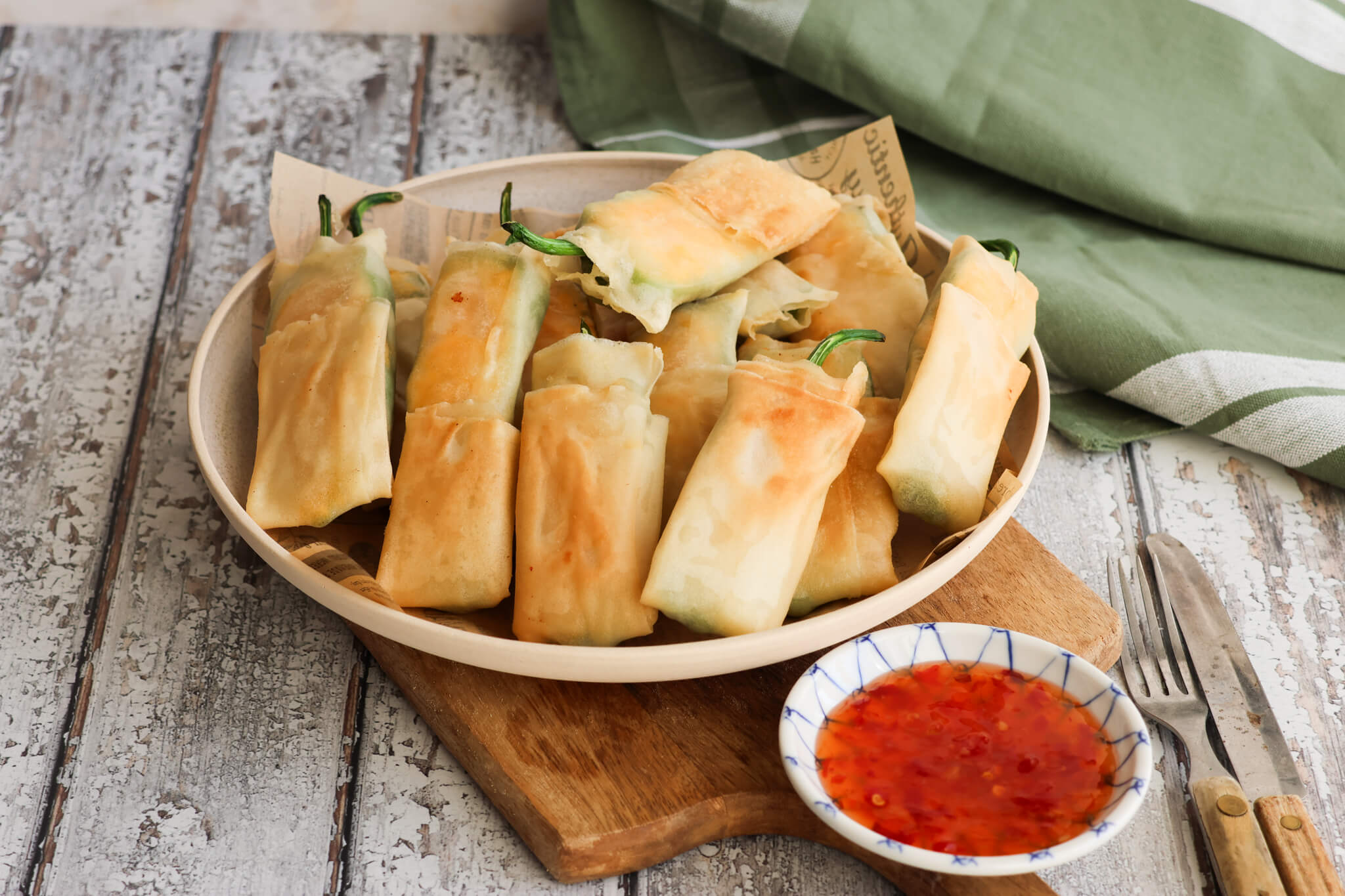 Prøv f.eks. kartoffelskiver med fetacreme, løgringe med bacon, mini forårsruller, flæskesvær og meget mere.