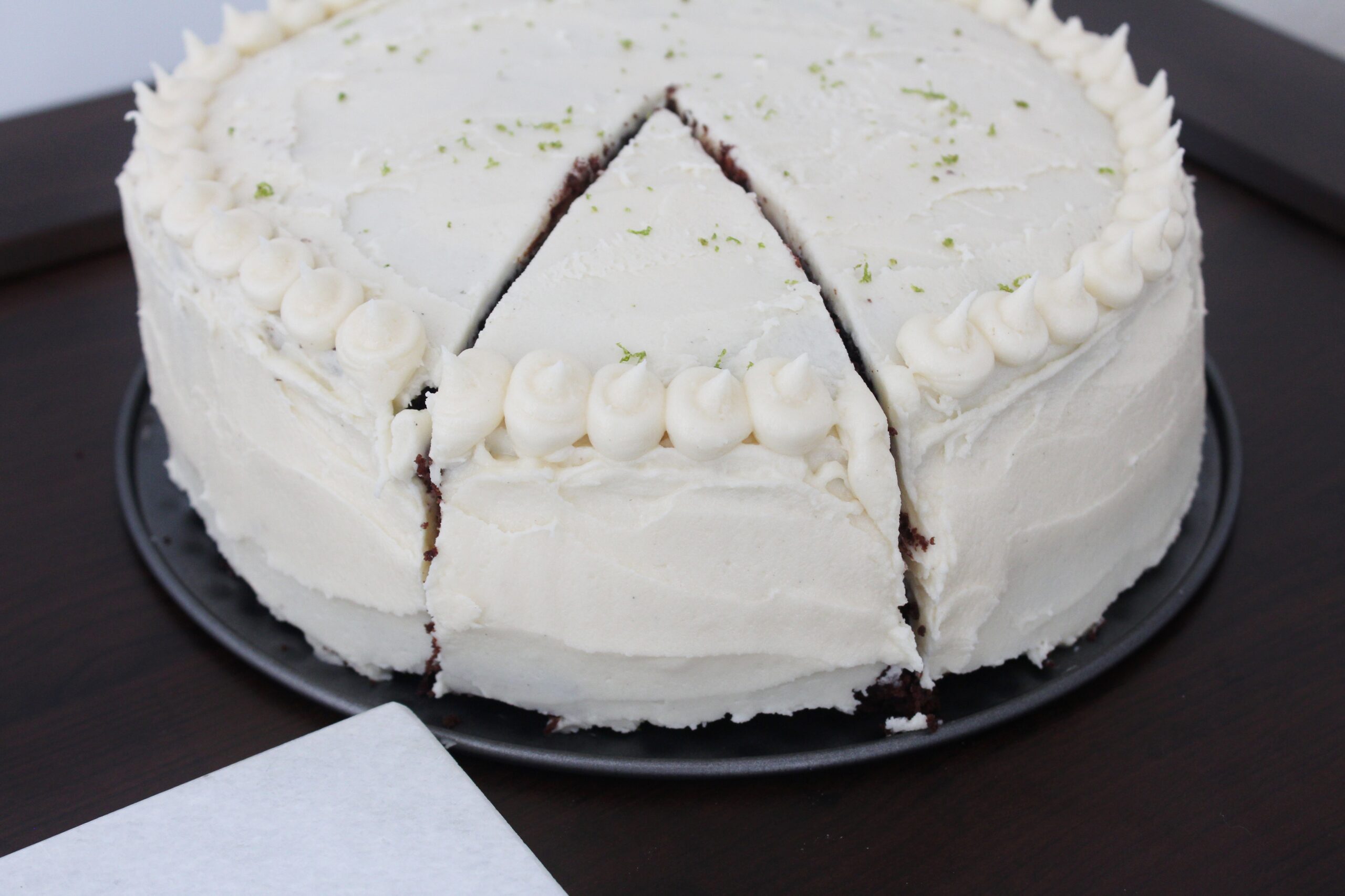 Awesome spongy chocolate cake with a little twist of lime and vanilla butter cream. It is surprisingly easy to make, and it tastes wonderful! Family and friends will love the cake!