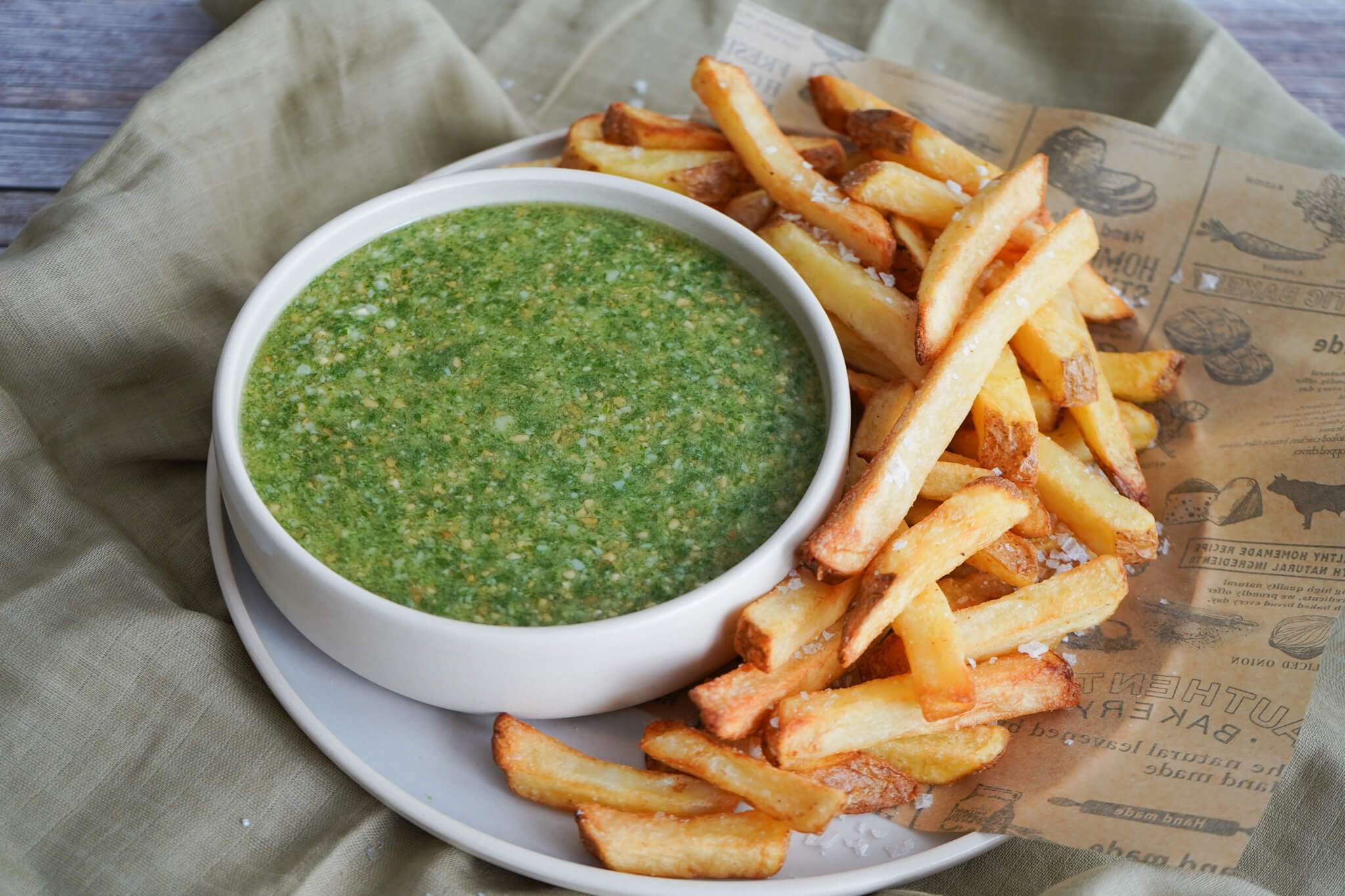 I dag servere jeg bare lækre sprøde pommes frites til min dobbelt dip, men den er også god til at dyppe f.eks. stegte tigerrejer i, grøntsagsstænger, brødstænger, salte kiksestænger, sprøde friterede stykker fisk, nuggets, bagt blomkål eller broccoli, løgringe og meget andet.
