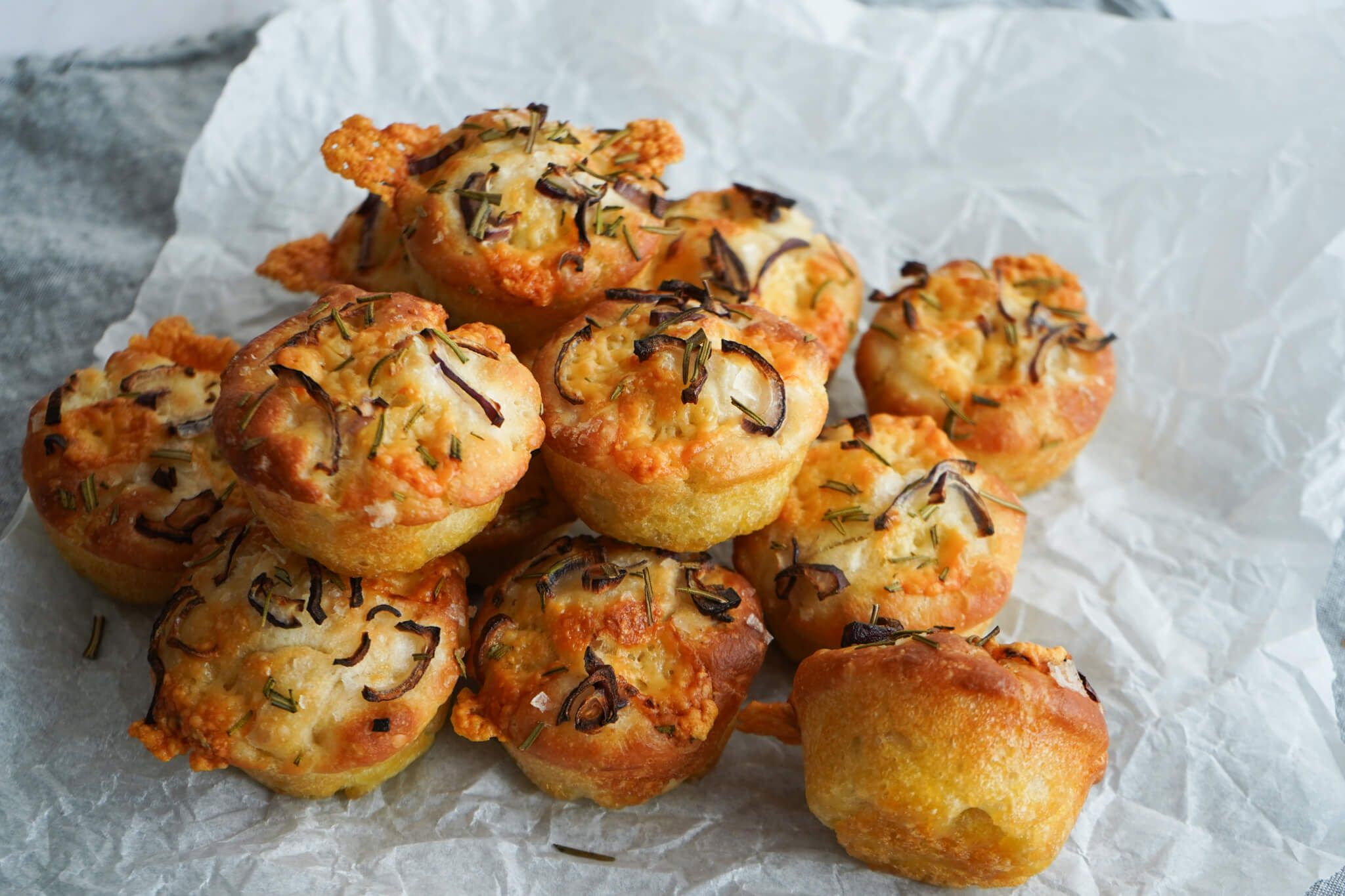 Foccaciamuffins er frysevenlige og skal blot tø op og kan så lunes i ovnen eller airfryer før servering.