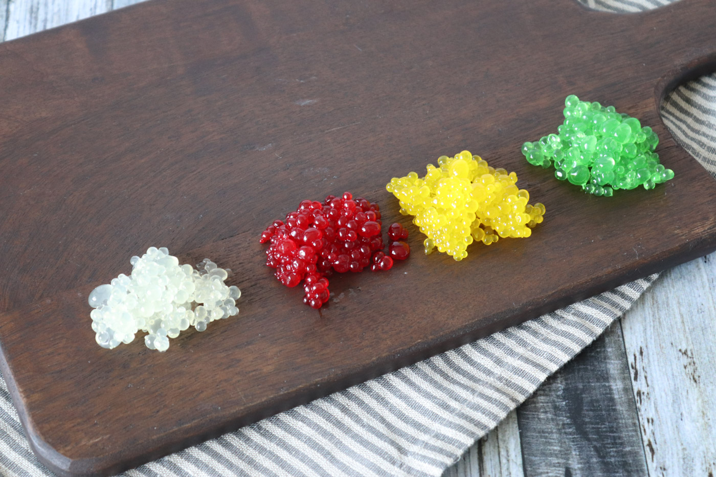 Nogle gange er pynt på desserter noget der skal være ekstra sjovt. Hjemmelavet frugtkaviar er både sjovt, farverigt og det kan laves med alverdens smage. Her kommer jeg med bud på hindbær, ananas, citron og æblekaviar.