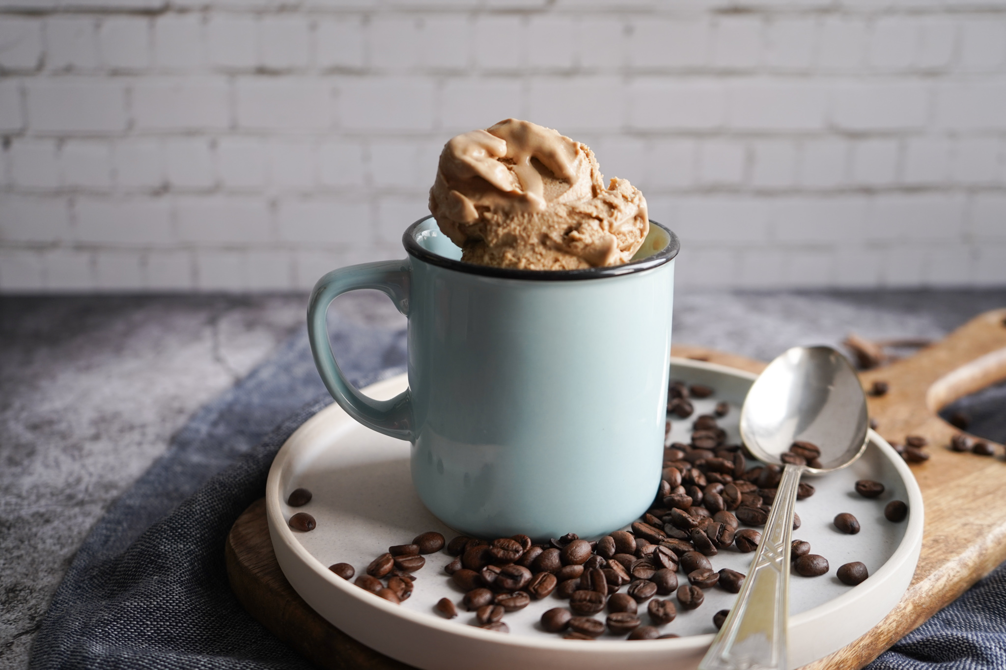 Smag på ismassen efter legering (når den er varmet til 82 grader) og tilføj mere kaffe, hvis du ønsker en kraftigere smag. Jeg brugte 2½ spsk i alt i min ismasse, men du kan nemt tilføje mere eller mindre.
