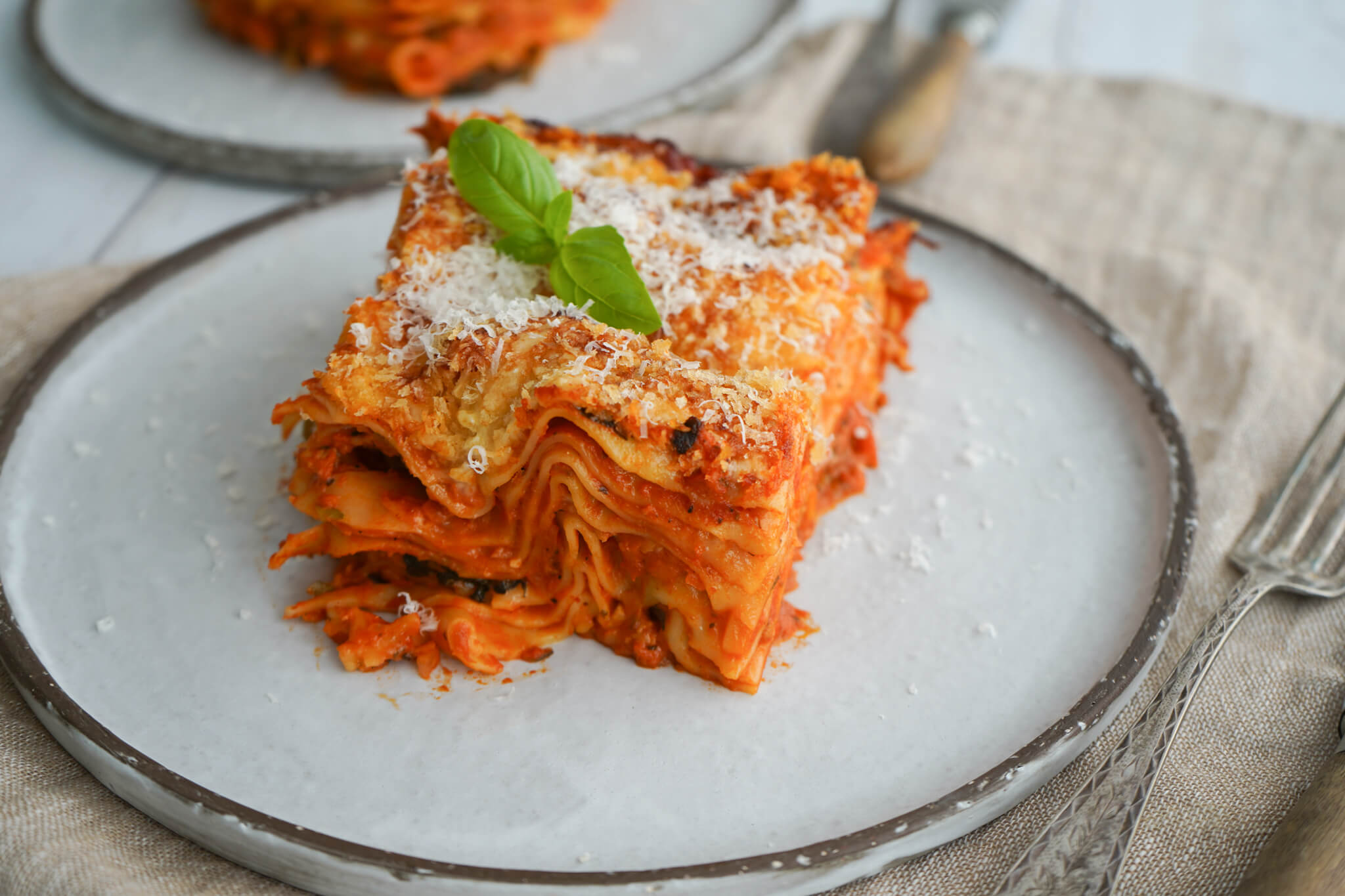 Super lækker opskrift. Vi halverede opskriften så den passede til en “normal” mængde lasagne og vores lasagnefad. Dejligt med en masse lag af pasta.