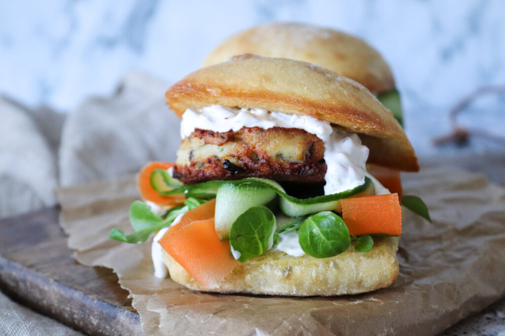 Lørdag (ishapsere og butterdejsbåde) -Jeg elsker en god og nem fiskefrikadellesandwich med hjemmelavet dressing. Så det står menuen på i dag!