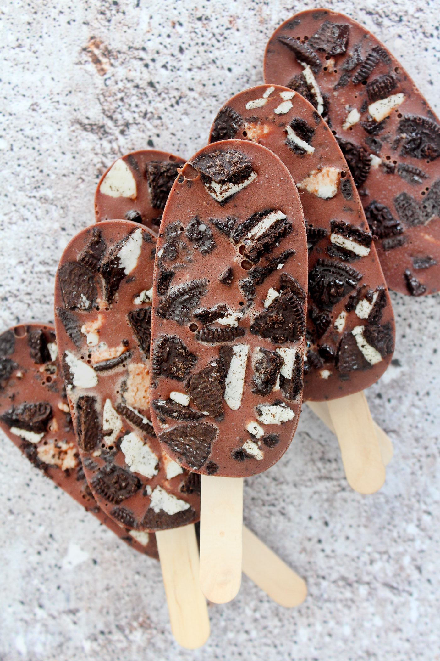 Nutellaispinde med oreos smager skønt. De kræver inden ismaskine og er også kendt under navnet “fudgesicles”.