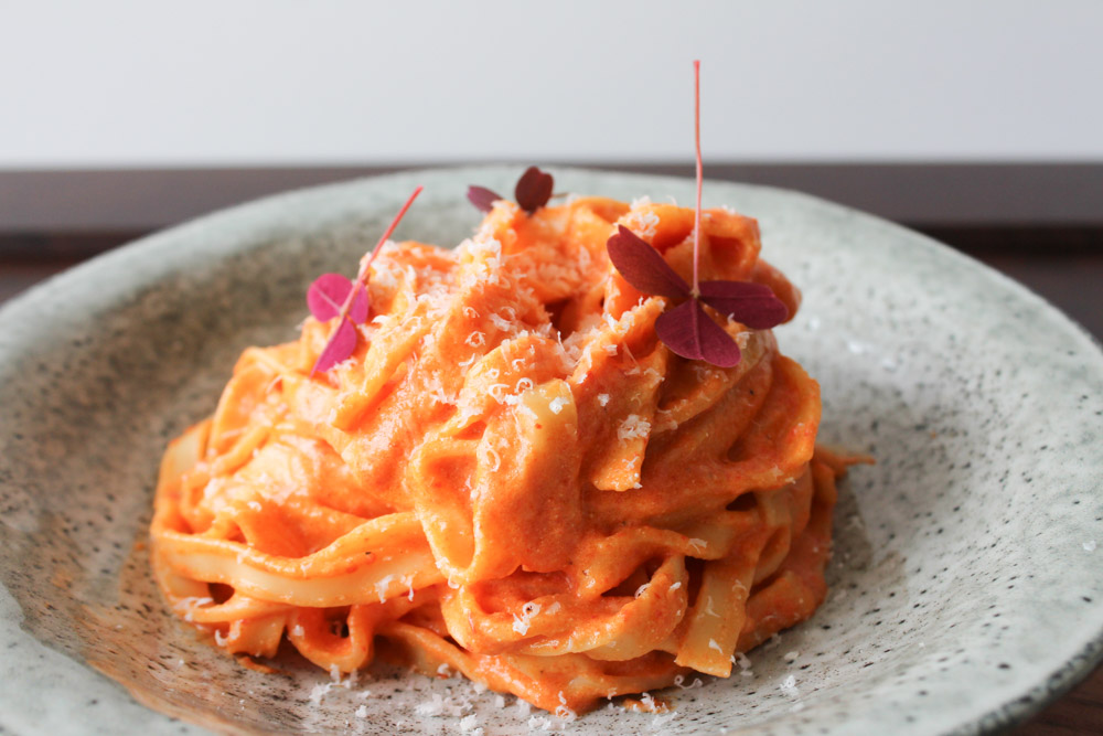 Pasta I En Skøn Peberfrugt Og Feta Sauce