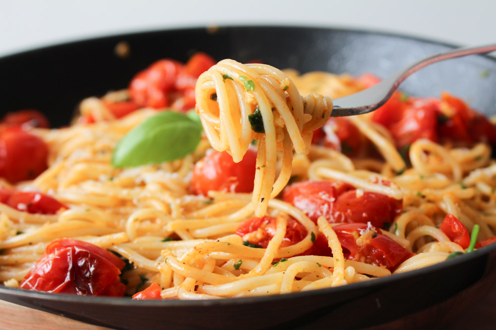 Pasta Med Masser Af Hvidløg Og Cherry Tomater