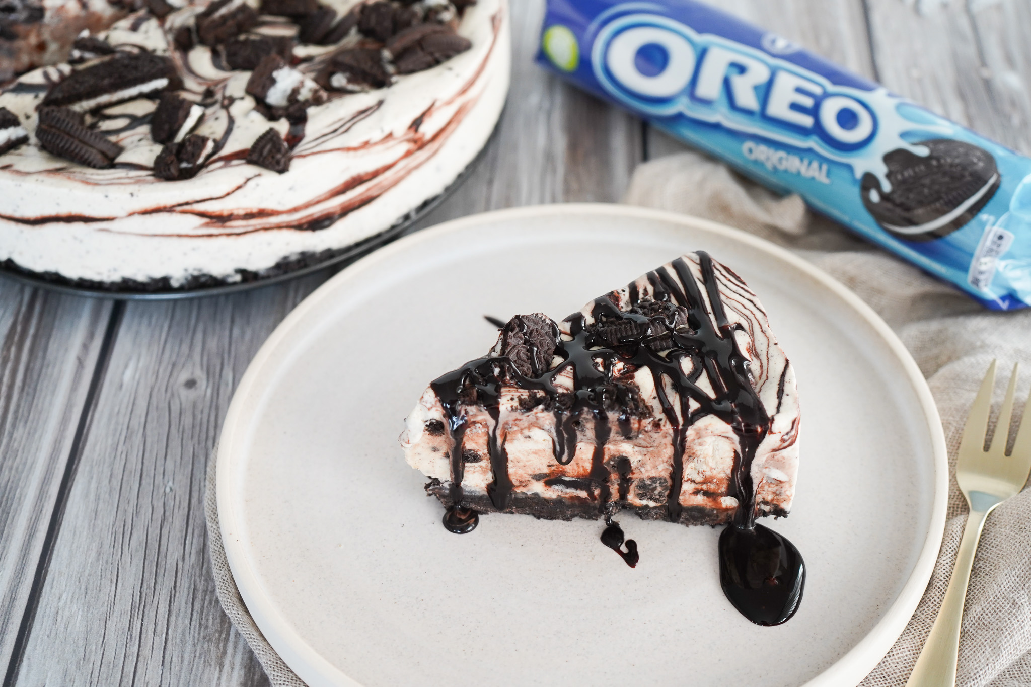 Oreo islagkage uden ismaskine med hjemmelavet chokoladesauce. En skøn og nem dessert for hele familien. Den tager ikke lang tid at bikse sammen.