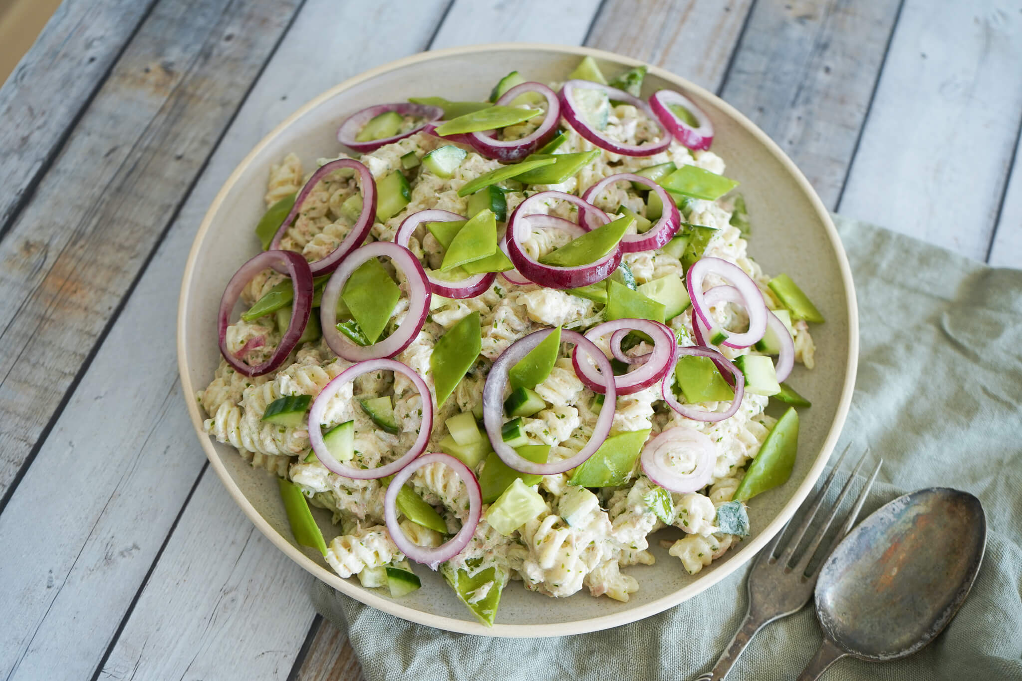 Hvad kan man servere til pastasalat med tun?