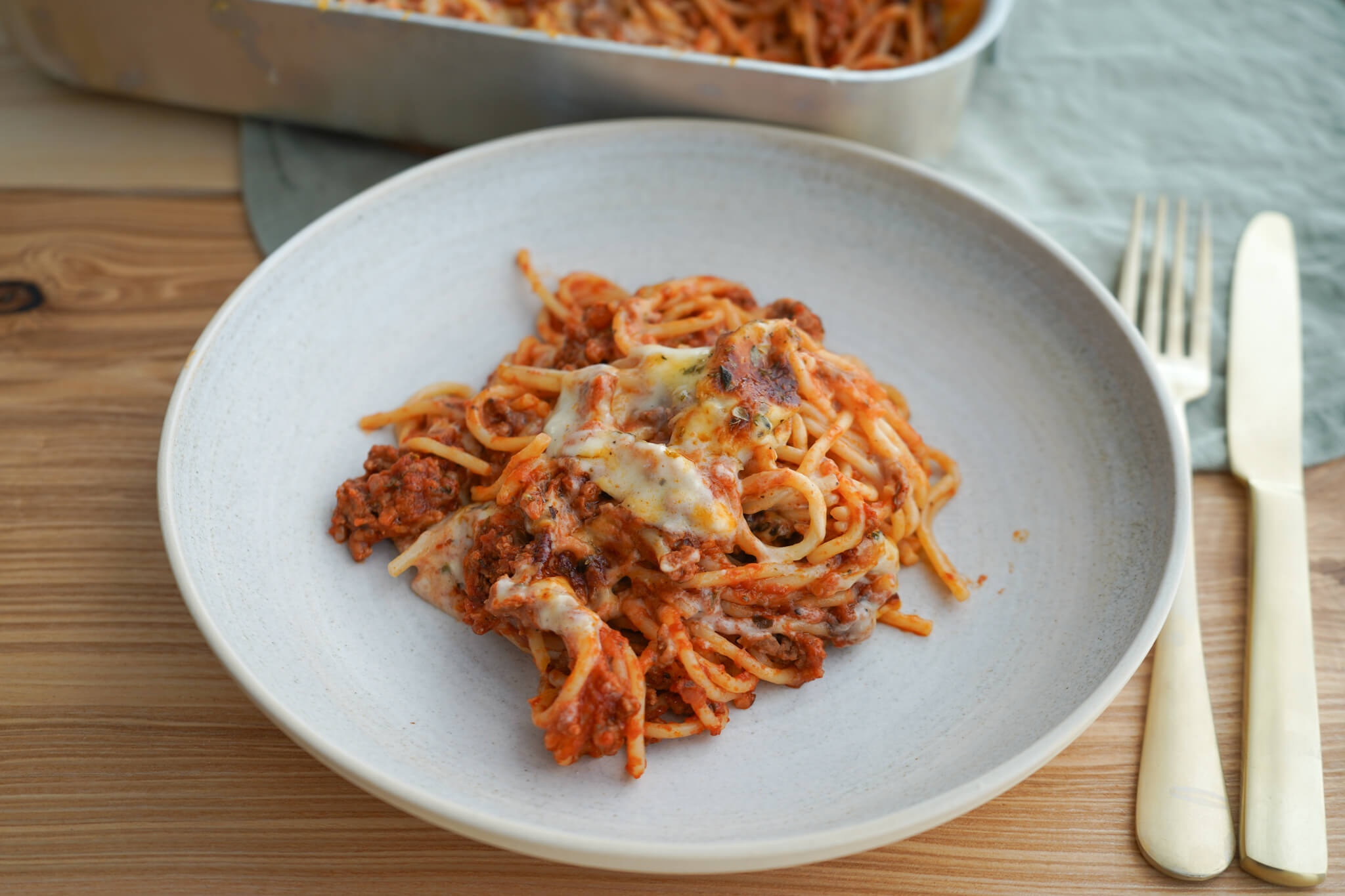 - Kom halvdelen af kødsaucen i et fad, så alt pastaen, det sidste kødsauce, ricottacremen fordeles på toppen og osten fordeles. Bag nu fadet i cirka 30 minutter. Velbekomme.