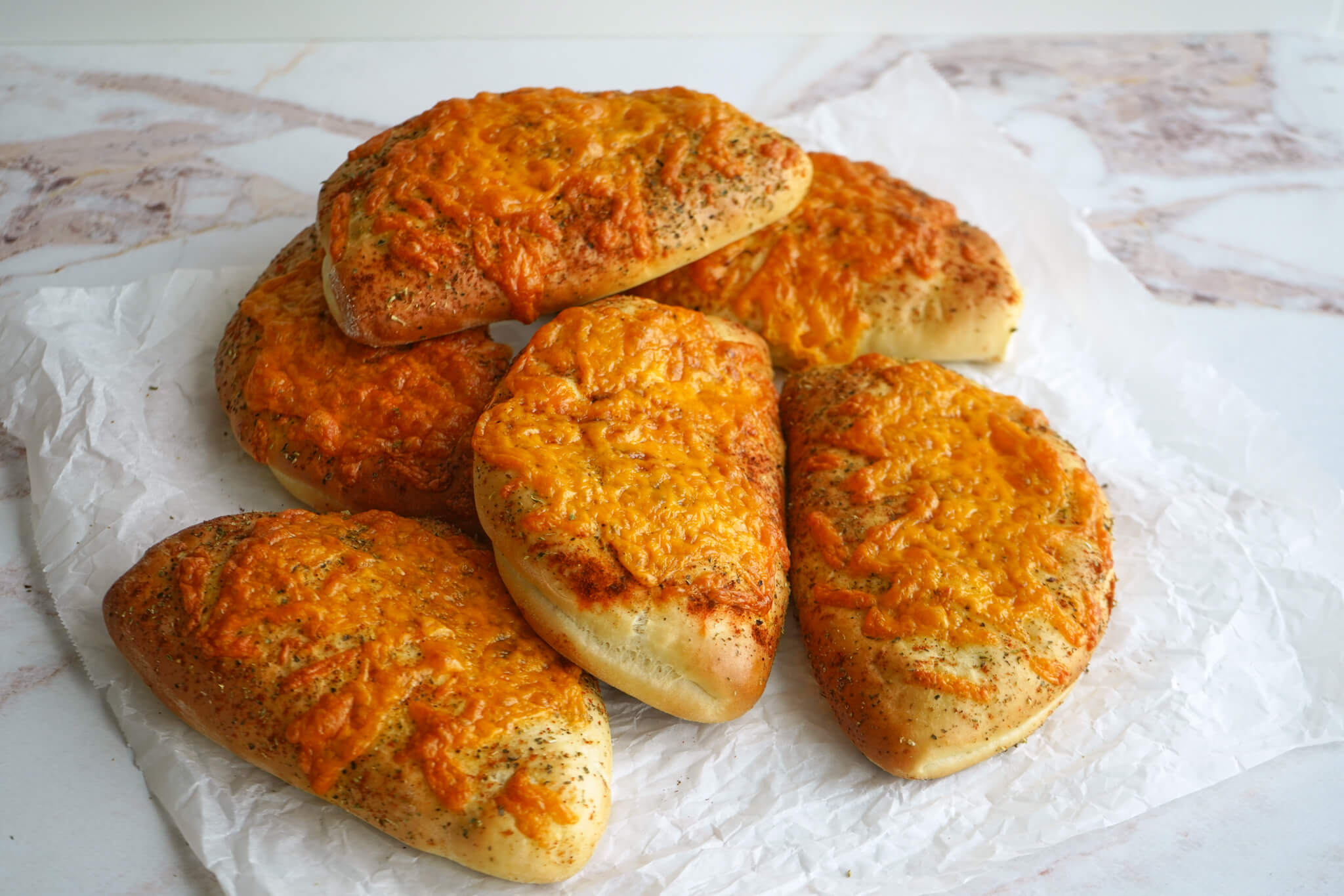 Du kan toppe brødene med lige det du vil – jeg kan også anbefale helt klassisk en masse sesamfrø eller solsikkefrø. Du kan droppe ost eller bruge anden ost. De kan også pensles med f.eks. hvidløgssmør og drysses med parmesan.