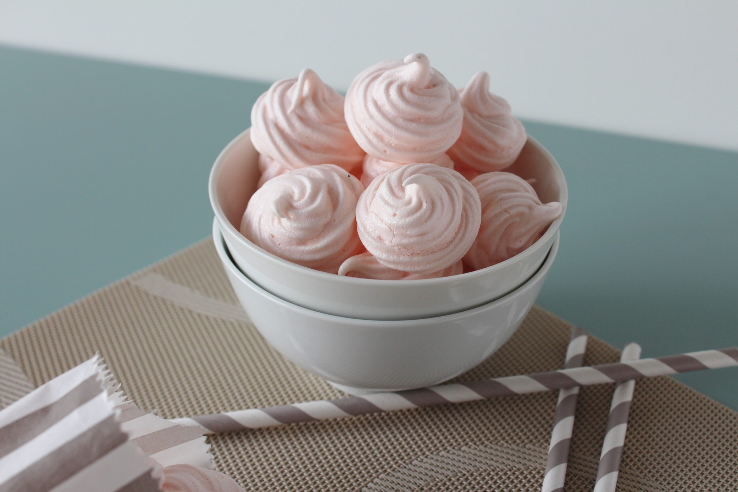 Jordbær marengs er nemme og lækre små marengskys, som er perfekt til en god portion is. Brug disse kys med jordbærsmag til f.eks. børnefødselsdage og eller til en dessertbuffet.