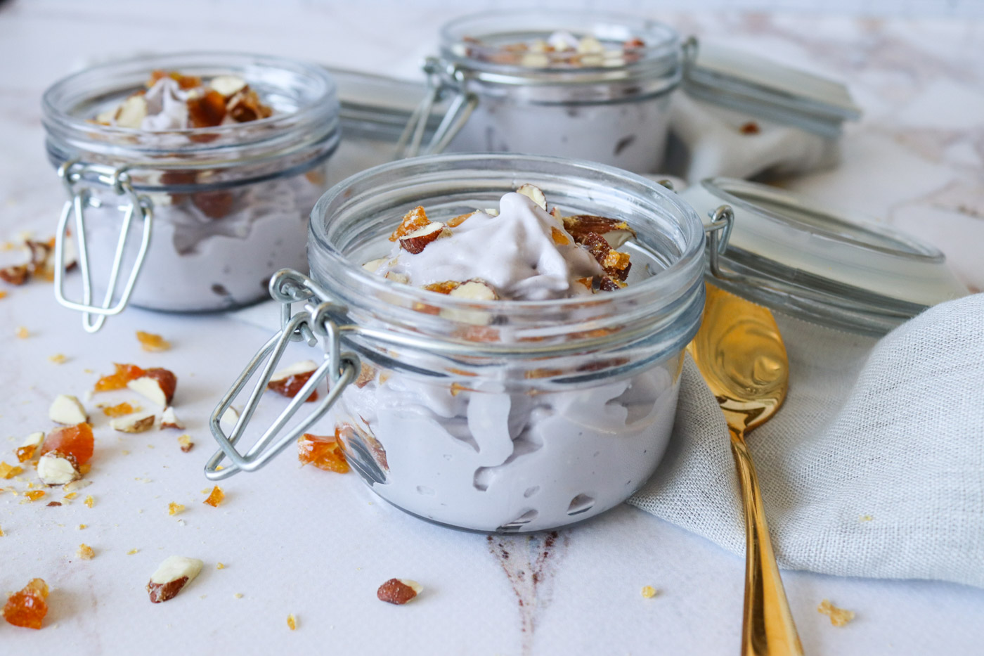 Sommerdrøm Isdessert Med Mandelkrokant – Softice Med Smag Af Blåbær