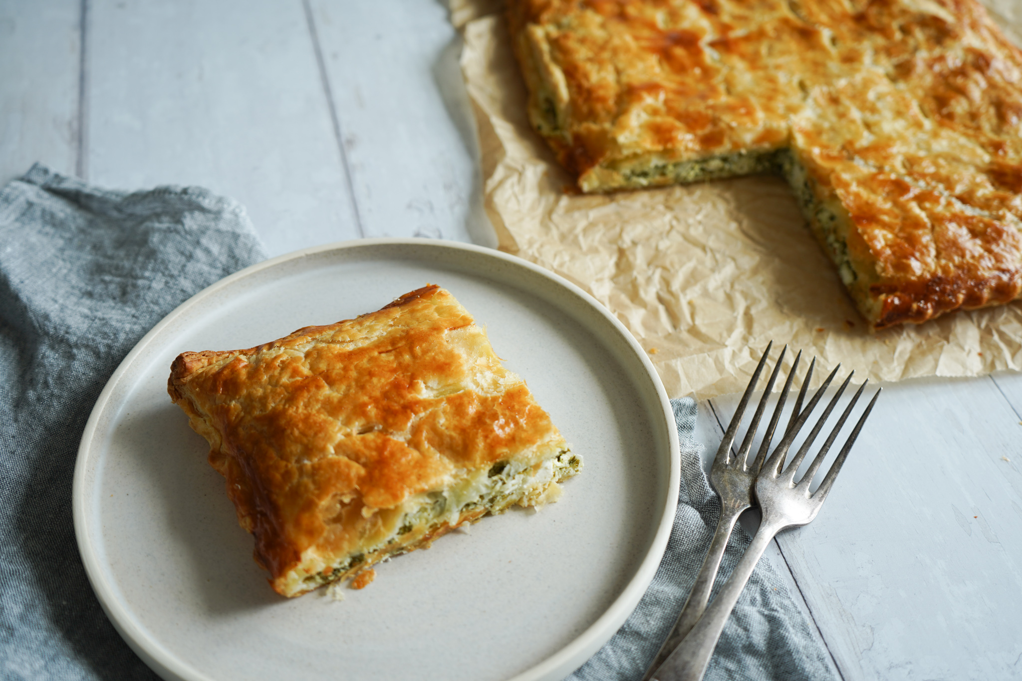Butterdej med spinat og feta