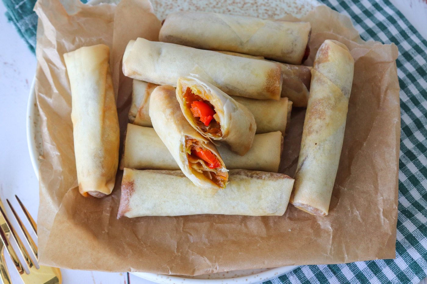 Hjemmelavede Sprøde Forårsruller Med Grøntsager Og Peanut Butter