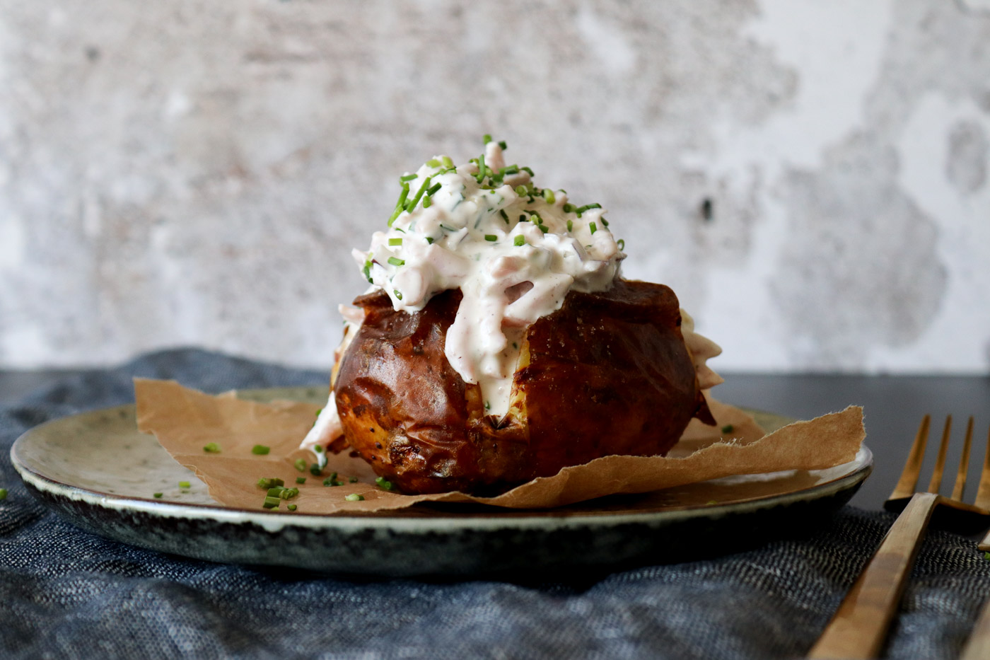 Bagekartoffel Med Skinkesalat