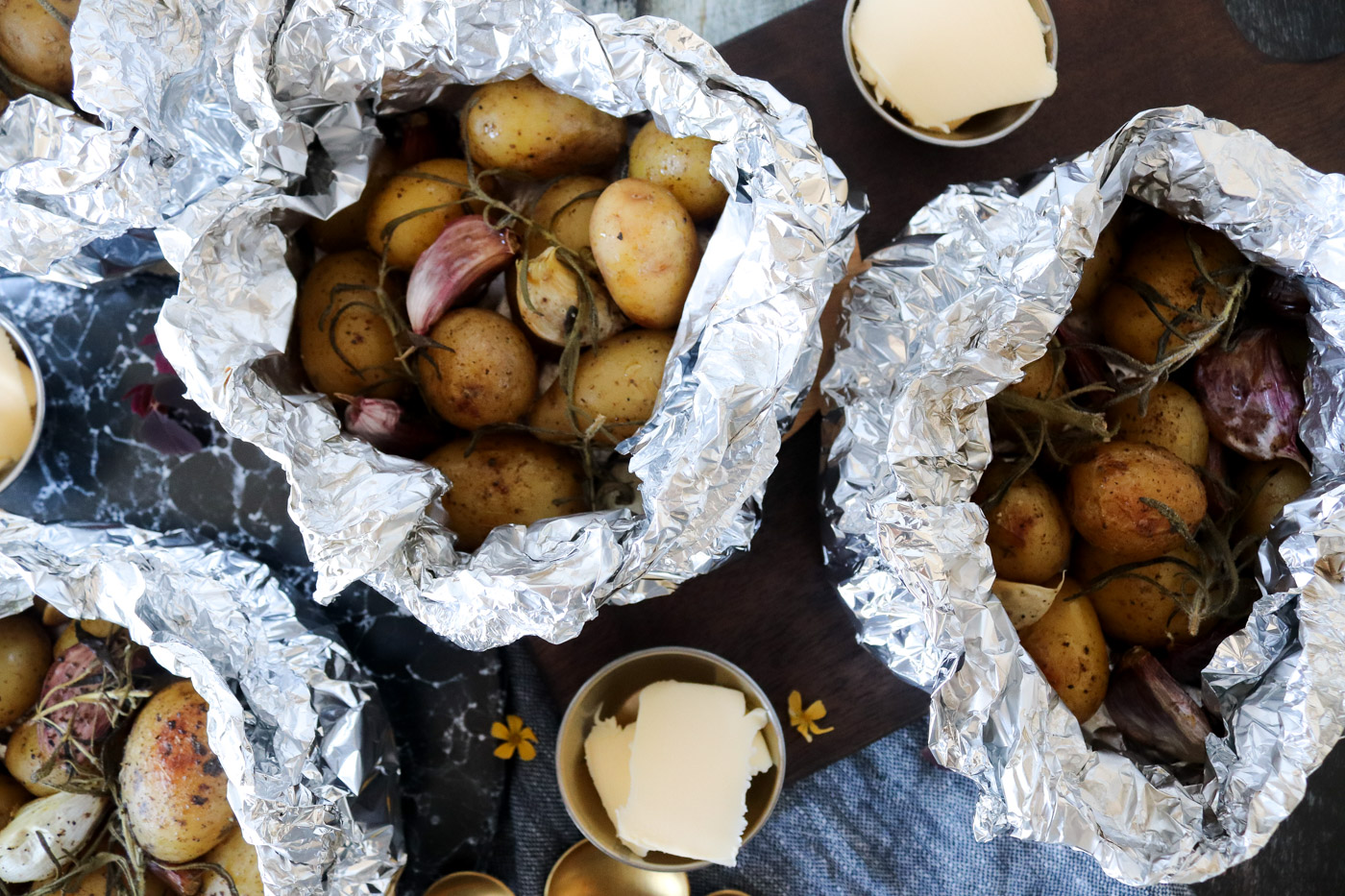 Nye Kartofler Og Hvidløg I Staniol