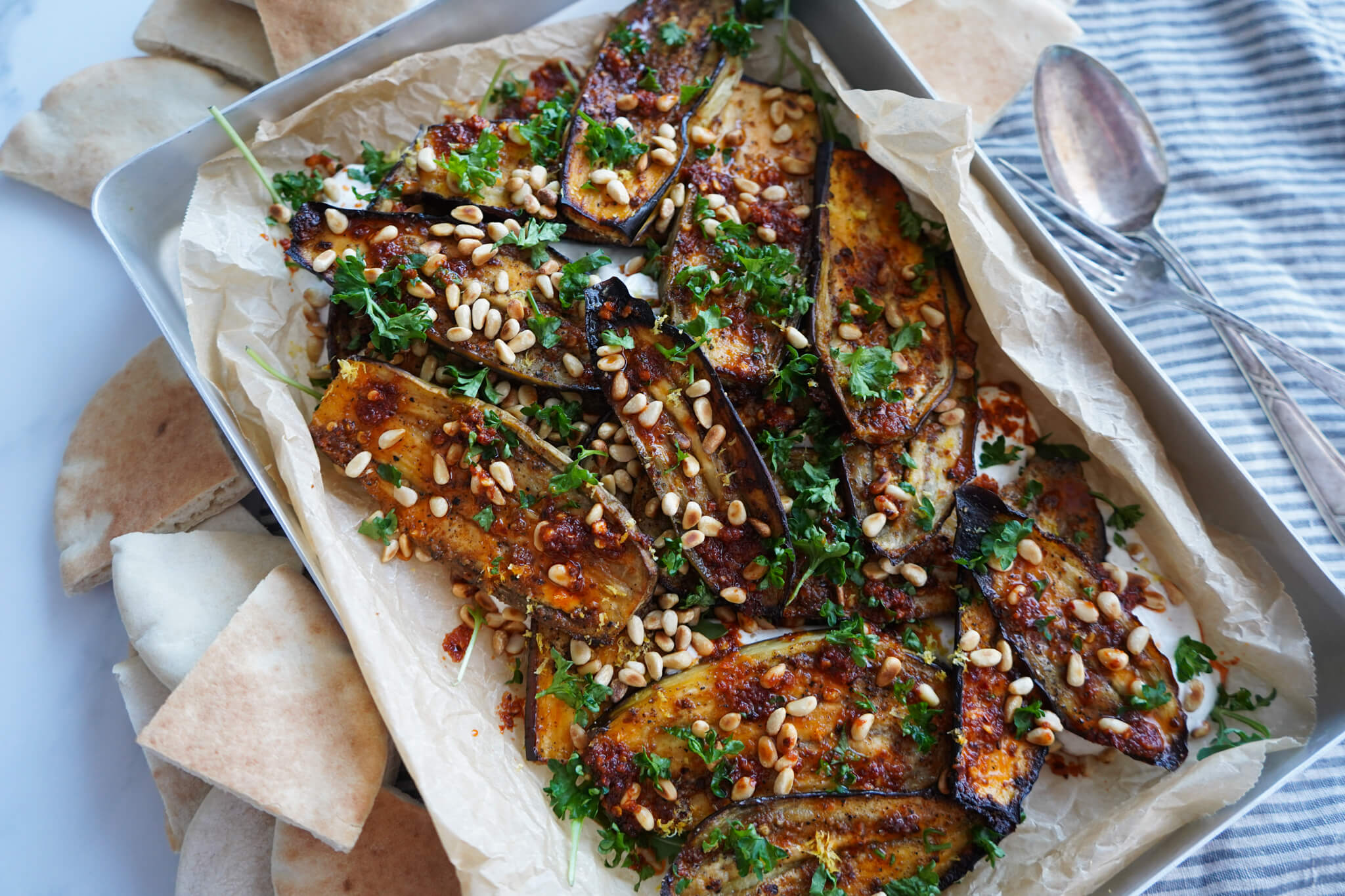 Bagt aubergine med yoghurtsauce