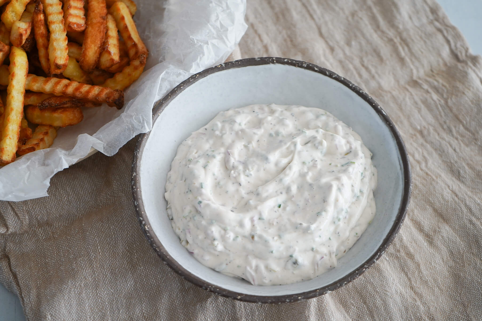 Hjemmelaver sauce tartar passer også godt til nuggets og andre friterede variationer af kylling. Den er også god til grillede majskolber og grøntssagsstave.