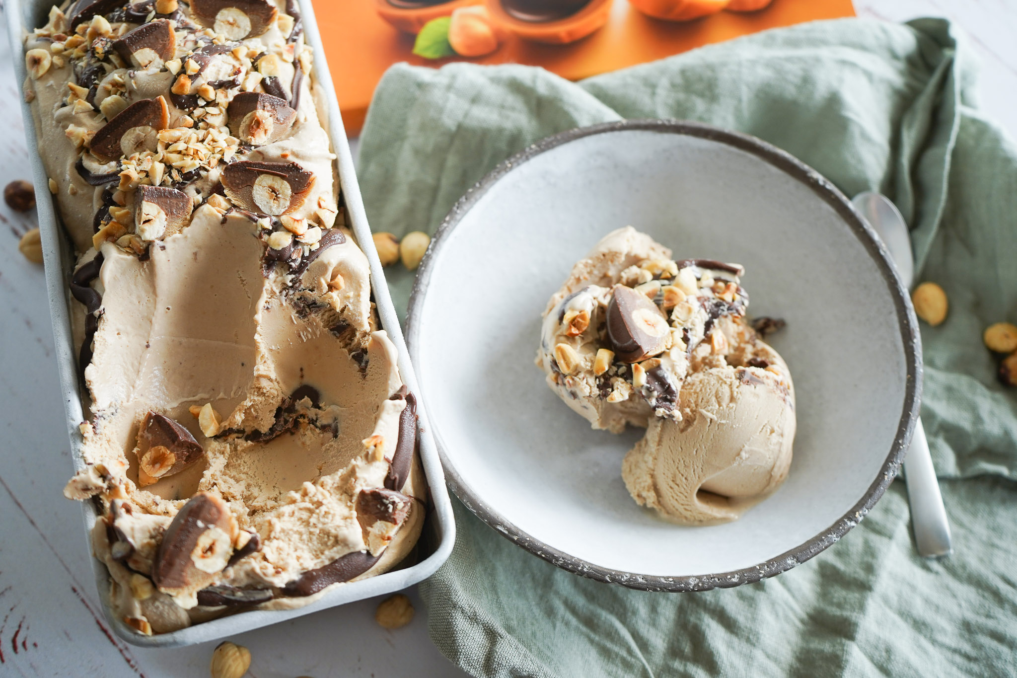 Toffifee-is med nutella swirl og ristede hasselnødder smager himmelsk. Isen er nem at lave og er så cremet og lækker.
