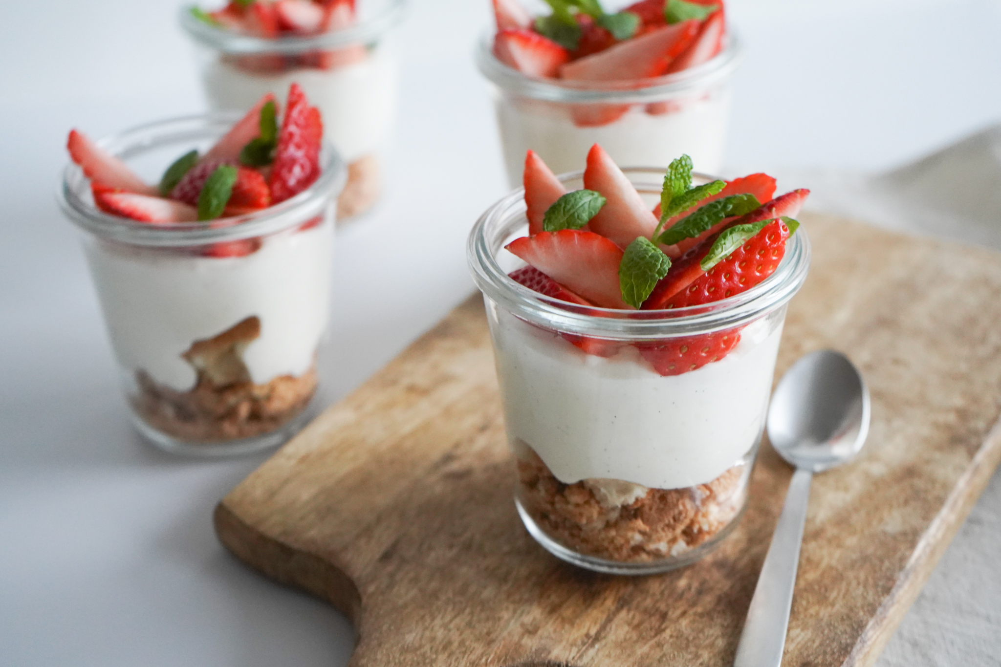 Jeg elsker jordbær i denne dessert, men alle slags bær og frugter kan bruges i denne dessert.