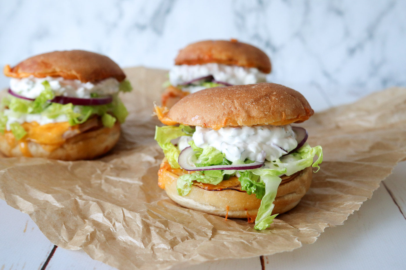 • Bollerne er nu klar til at bliver samlet med dressing, salat og løg.